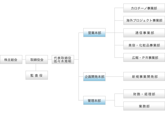 ごあいさつ | 会社概要 | 事業内容 | 組織図 | アクセス | カロチーノ | トンカットアリ | 商品企画・開発 | 新規事業 | 販促・PR | 最新情報 | トップページ